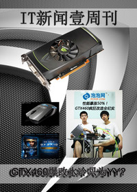 ????泡泡網(wǎng)主板頻道8月2日?忙碌的一周已經(jīng)開始,匯聚一周熱點(diǎn)的《IT新聞壹周刊》又與大家見面了。在之前NVIDIA發(fā)布了主流級(jí)GTX460以后就變成了大家所關(guān)注的焦點(diǎn),而在上星期我們也作出了深度的評(píng)測,以及深入的超頻測試,今天我就來回顧一下上周IT方面的看點(diǎn)。 ??? 在上周顯卡方面我們放出了GTX460改造水冷的測試,進(jìn)一步挖掘了GTX460的超頻能力,并且結(jié)果卻是另我們吃驚,經(jīng)過