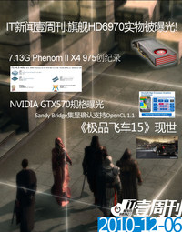 ????泡泡網(wǎng)主板頻道12月6日?隨著時(shí)間的推移又臨近年末,在上周業(yè)界依然爆出了不少有熱點(diǎn)的消息,在處理器方面AMD尚未發(fā)布旗艦級(jí)四核心處理器Phenom?II?X4?975?BE黑盒版首次創(chuàng)下多核心處理器超頻世界紀(jì)錄!另外Radeon HD 6970/6950的實(shí)物也被公布于眾,下面我們來關(guān)注這期精彩盡的IT新聞壹周刊! ● 本周看點(diǎn) ??? 《7.13G Phenom II X4
