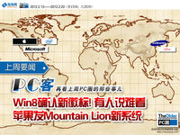 吳宗蔚 · 2012-02-20 11:32 - PC客:Win8確認新徽標!蘋果發(fā)布新系統(tǒng)