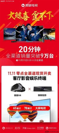 ? ? 如今的雙11已經(jīng)在沒(méi)有多少光棍節(jié)的含義了吧?全都變成通宵達(dá)旦的找券湊單薅羊毛,當(dāng)然,這是消費(fèi)者行為。對(duì)于任何接觸電商的行業(yè)來(lái)說(shuō),銷(xiāo)售戰(zhàn)報(bào)無(wú)疑是他們最為關(guān)心的內(nèi)容,幾分鐘內(nèi)銷(xiāo)量多少?多久時(shí)間銷(xiāo)售額破百萬(wàn)千萬(wàn),這些個(gè)數(shù)字讓人著迷。? ? 根據(jù)我們得到的消息,互聯(lián)網(wǎng)電視品牌微鯨在今年雙11零點(diǎn)開(kāi)始取得了20分鐘全渠道銷(xiāo)量突破9萬(wàn)的佳績(jī),相比今年微鯨電視總銷(xiāo)量可以輕輕松松突破百萬(wàn)了吧?? ? 另一