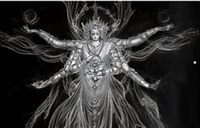 ??? 據(jù)《觀佛三昧經(jīng)》說,世界剛剛形成山海大地時(shí),光音天上貪玩的仙人便到人間游戲。其中一位仙人在大海洗浴時(shí),因「水精」入身而生一肉卵。這肉卵經(jīng)八千年后,終于生出一個(gè)女怪,身長有如須彌山,具一千支眼睛、二十四只腳,頭、口與手?jǐn)?shù)皆為九百九十九,樣貌好不駭人,即為阿修羅始祖。但是因?yàn)榈坩屜残聟捙f的性格,天人與阿修羅的戰(zhàn)爭,將永無止休。 天人合一阿修羅國王 ??? 從歐洲電影的神話到游戲王國的逍