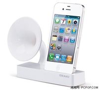 ??? 泡泡網(wǎng)蘋果配件頻道10月26日 Ozaki iSuppli Gramo iPhone4底座在2011日本紅點(diǎn)設(shè)計(jì)大賽中贏得大獎(jiǎng),事關(guān)它不僅僅只是一個(gè)底座,它是一個(gè)集底座、充電器及喇叭為一體的復(fù)古底座。 ??? 從圖中可以看出,它的外觀設(shè)計(jì)靈感來(lái)自于老式留聲機(jī)。把iPhone插上從留聲器擴(kuò)展出來(lái)的iPhone插槽便可以方便用戶縱向觀看,F(xiàn)acetime或通話的時(shí)候仍然可以正常使用,
