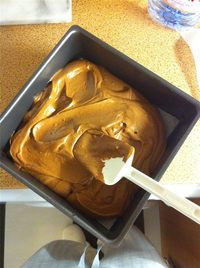 ??? 國(guó)外網(wǎng)友的iPhone 4蛋糕制作全過(guò)程,不必多說(shuō)了直接看圖吧: 攪拌好的混合了巧克力的面粉,即將放入烤箱 剛從烤箱拿出來(lái)的蛋糕坯子,下一步是覆上保鮮膜放入冰箱冷卻 在夾層抹上香草冰激淋 ??? 現(xiàn)在開始準(zhǔn)備蛋糕上面的一層——巧克力糖霜,由于我正在做一個(gè)iPhone蛋糕,所以我會(huì)用巧克力讓它變成黑色的
