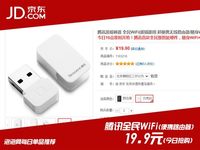 泡泡網(wǎng)手機頻道8月18日?騰訊的隨身WiFi也終于是姍姍來遲坐不住了,在360、小米、百度等隨身WiFi推出之后,騰訊今天也正式在京東商城開賣了旗下的隨身WiFi,名字叫做“全民WiFi”。價格方面,同樣也是大家喜聞樂見的19.9元;另外,購買這款隨身WiFi產(chǎn)品還將贈送價值300元的游戲“豪華大禮包”。 >>京東商城:騰訊全民WiFi 購買送300元游戲大禮包[點擊直達] 不