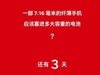 ????錘子科技將會在4月9日發(fā)布新品手機似乎已經(jīng)不是什么新聞了,但是隨著發(fā)布會的臨近,錘子科技也開啟了自家的“傳統(tǒng)預(yù)熱模式”,那就是紅底白字的簡約大海報。今天也是距離發(fā)布會開始倒數(shù)第三天的日子,錘子科技的海報也有了新內(nèi)容。????幾段類似的句式下來之后,關(guān)鍵點停留在了“一部7.16毫米的纖薄手機,應(yīng)該塞進多大容量的電池”這句話上。從這里我們也知道了即將發(fā)布的新品會有7.16毫米的纖薄機身,而且還
