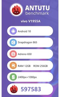 2月15日消息,有網(wǎng)友曝光一款型號為V1955A的vivo新機在安兔兔上的跑分截圖,跑分高達597583,是目前安兔兔上跑分最高的驍龍865手機。不出意外的話,這款新機是vivo iQOO 3 5G版。