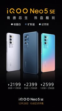 陳彤 · 2021-12-27 15:21 - iQOO Neo5 SE明日十點正式開售,2199元起