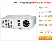 ??? 泡泡網(wǎng)投影機(jī)頻道2月13日 ● 產(chǎn)品型號(hào):NEC NP-V260+ (報(bào)價(jià) 參數(shù) 圖片 評(píng)論 ) ● 產(chǎn)品現(xiàn)價(jià):2999元(返300元電子券) ● 購(gòu)買鏈接:【京東商城】 ● 編輯點(diǎn)評(píng):NEC V260+是一款入門商務(wù)投影機(jī),它采用DLP投影技術(shù),擁有800×600分辨率,2600流明亮度,對(duì)比度為2200:1,適用于小型會(huì)議室。同時(shí),這款產(chǎn)品的重量只有2.5公斤,便攜性也非常不