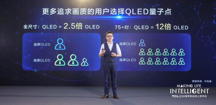量子點電視在電視領(lǐng)域近來可謂高光無限。第一,銷量遠(yuǎn)高于OLED電視。2019年,選擇量子點的用戶是OLED的2.5倍,而在75吋以上的大屏,量子點的用戶更是OLED的12倍;第二,越來越多的新品牌加入,比如華為/小米在近期都推出了首款量子點電視,并且都是旗下優(yōu)異旗艦的存在。