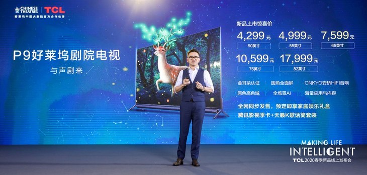 搭載了安橋音響,經(jīng)過金耳朵專業(yè)調(diào)校的TCL P9好萊塢劇院電視,2020年春季首發(fā)5個尺寸段新品,其中50吋售價4299元,55吋售4999元,65吋僅售7999元,75吋售10599元,82吋僅售17999元,在超大屏尺寸段其價格極具殺傷力。