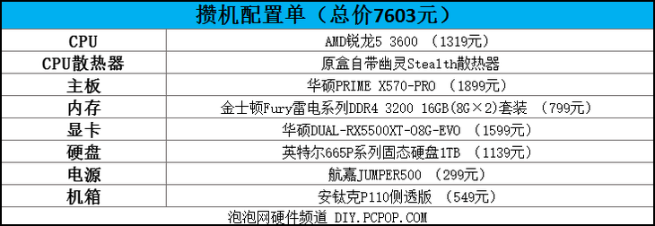 總預(yù)算8000元 AMD銳龍5 3600家用娛樂主機(jī)配置單推薦
