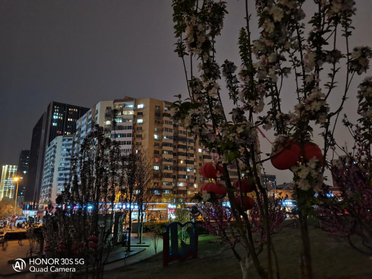 除了白天,榮耀30S在夜晚也有著非常出色的拍照表現(xiàn),這源自其大底的優(yōu)勢,能夠讓手機也光線不足的時候獲得更多的進光量,從而提升拍攝畫面的整體亮度。值得注意的是,榮耀30S在夜拍時并不是單純的將亮度調高,而是夜晚的整體風格,只是提亮局部暗光的細節(jié),并不會把夜晚排成白天,而是讓夜晚更加清晰。