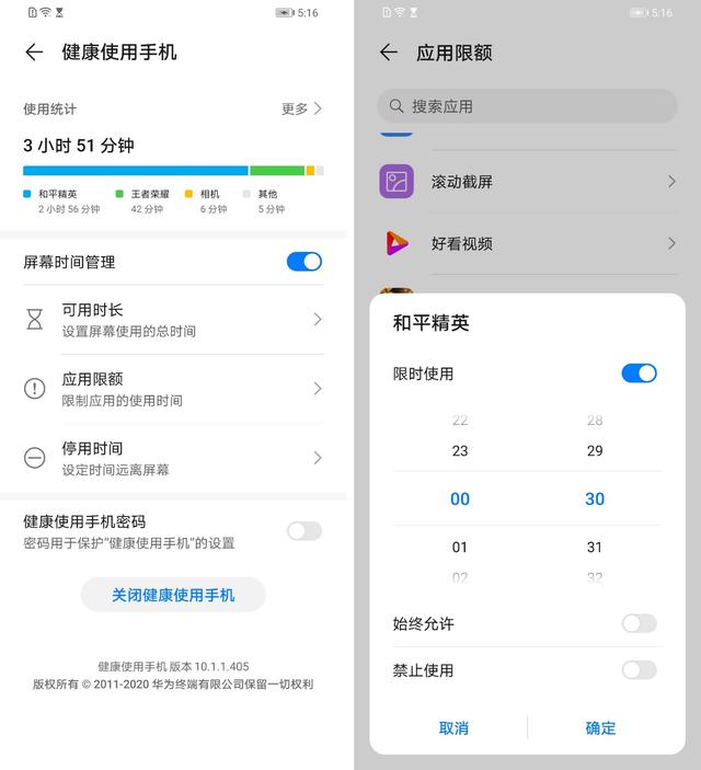 健康使用手機(jī)則可詳細(xì)了解手機(jī)運(yùn)行各種APP的時(shí)間,如果家中有孩子的朋友,還可以設(shè)置各種APP的使用時(shí)間與密碼,防住游戲沉迷。