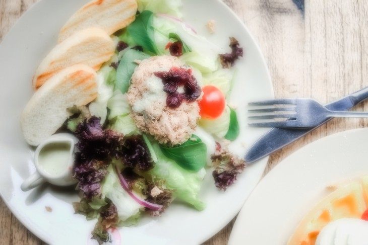 可以利用環(huán)境或者自己的一些小物件來協(xié)助拍攝,比如隨身攜帶的紙巾就可以作為臨時的“反光板”。還可結(jié)合餐具,讓畫面更豐富多元。