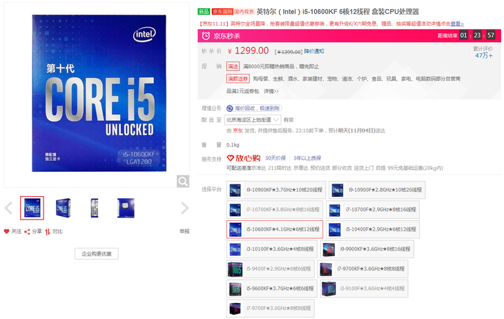 為什么說酷睿i5-10600KF這款處理器的性價比非常之高呢?我們先看價格!在眼下的雙十一大促期間,這款處理器在天貓商城英特爾官方旗艦店僅售1299元,足足比帶核顯的酷睿i5-10600K便宜了500塊錢。對于游戲玩家們來說,能夠節(jié)省500塊錢的攢機塊錢,或者將這節(jié)省下來的500塊錢用于購買性能更出色的顯卡,怎么看都是相當(dāng)劃算的。