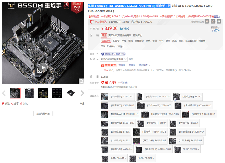 想為AMD ZEN 3處理器挑選一超實惠的座駕,華碩TUF GAMING B550M-PLUS (WI-FI)重炮手主板無疑是眼下不容錯過的選擇。11月9號,這款主板將開啟限時秒殺活動,739元即可擁有!