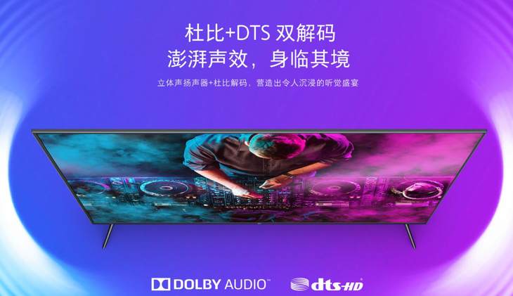 而在優(yōu)秀的畫面效果之外,Redmi智能電視A55與Redmi智能電視A50還搭載了小米的Mi Sound自研音效算法,通過這一套自研音效算法與電視配備的倒相式增強設計雙揚聲器組合,為用戶打造了高保真聲場效果。
