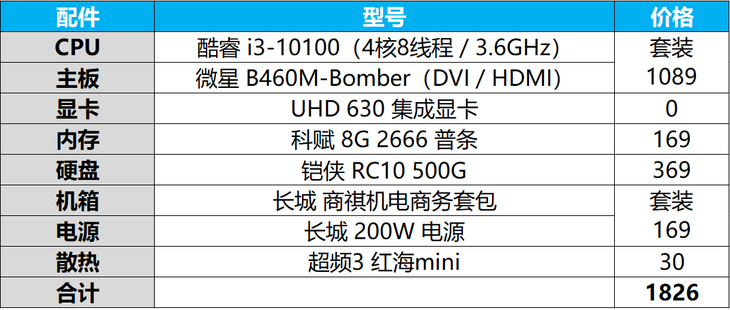 如果有PS、CAD等或大量軟件多開的進階辦公需求,更推薦升級到四核八線程且指令集更為完整的i3-10100處理器,在線上第三方店鋪與主板一同購買價格更實惠,但需要注意的是,如果你不打算安裝獨立顯卡,就不要買成不帶集顯的i3-10100F了。