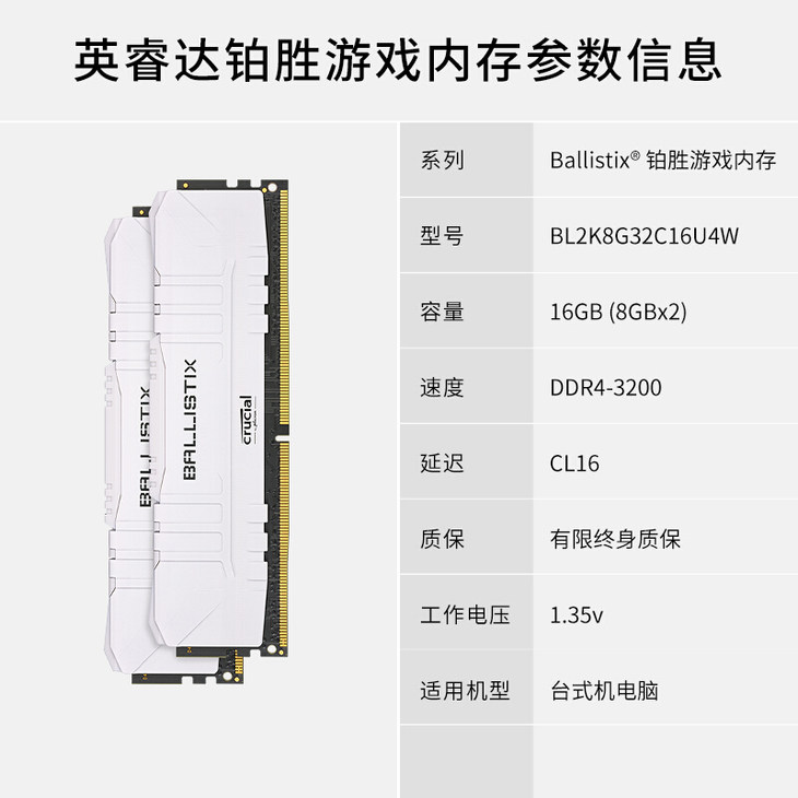 要充分發(fā)揮核顯性能,最好是搭配雙通道的高頻內(nèi)存,英睿達的新鉑勝白馬甲條就是不錯的選擇,它采用鎂光c9bjz顆粒,有著不錯的超頻體質(zhì),并且支持3200MHz的XMP頻率,沒有手動超頻經(jīng)驗的新手也可在主板中一鍵開啟,最重要的是它的價格也不會比普條高太多。