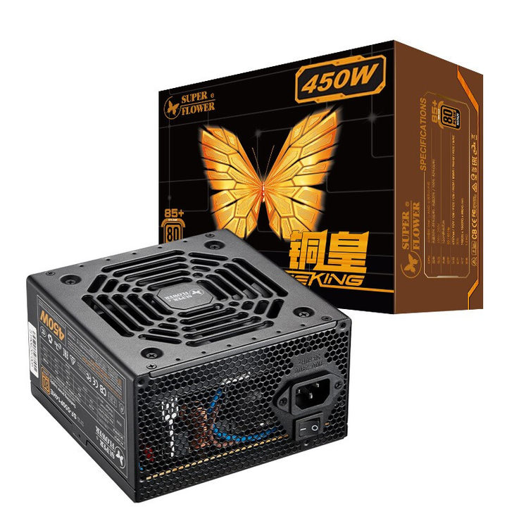 電源選用的是振華銅皇450,核顯平臺用這個功率是比較過剩,不過就算買350W價格差別也不大,選擇它還可以為后續(xù)的配置升級Zen3系列CPU和獨立顯卡留出余量。