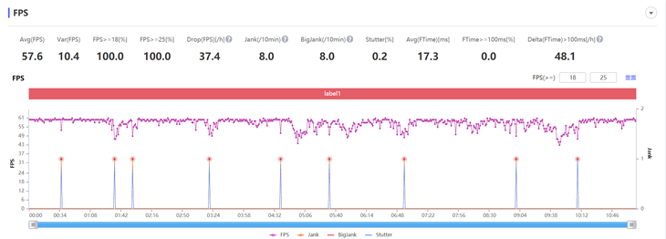 測試場景為19-10圖BOSS關(guān)卡,畫質(zhì)設(shè)為預(yù)設(shè)最高。結(jié)果顯示,二者除開頭和結(jié)尾轉(zhuǎn)場處偶有正常的掉幀外,戰(zhàn)斗全程都能保持的很流暢,玩的過程中差別感受不是很明顯,如果非要比個高低,GPU方面略強的驍龍865還是會小勝一籌。