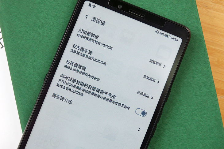 在系統(tǒng)設(shè)置中,我們可以針對墨智鍵進(jìn)行設(shè)置管理,設(shè)定短按、長按、雙擊對應(yīng)的操作。墨智鍵配合音量鍵使用時還可以用于調(diào)節(jié)屏幕亮度。