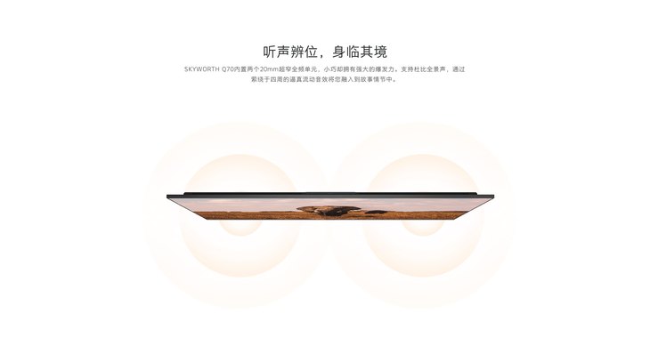 音質(zhì)表現(xiàn)也會直接影響整合觀影體驗,創(chuàng)維Q70鳴麗屏電視支持杜比全景聲,采用左右聲道設(shè)計,20mm超窄全頻單元擁有強大的爆發(fā)力,可以提供更加出色的聲音效果。