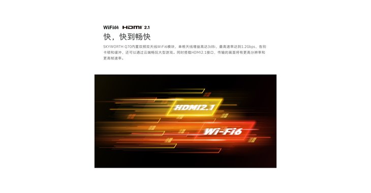 在網(wǎng)絡(luò)部分,創(chuàng)維Q70鳴麗屏電視內(nèi)置雙天線WiFi6模塊,最高速率達(dá)到1.2Gbps。通過WiFi網(wǎng)絡(luò)連接也不用太擔(dān)心速度的問題,只要你的網(wǎng)絡(luò)速度快,通過WiFi連接觀看高清視頻也不用卡頓,不用連接網(wǎng)線更方便。
