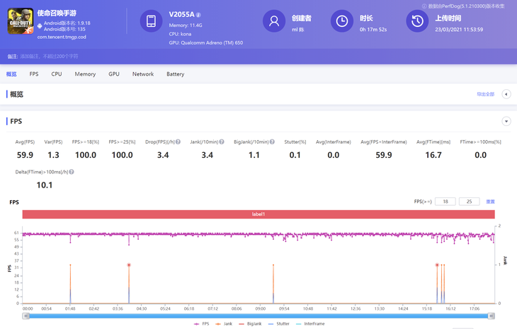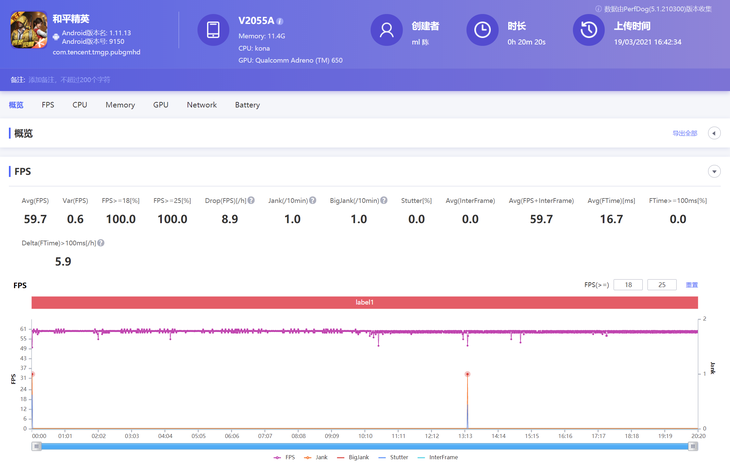 從下面的測試結(jié)果可以看到,在原生60幀模式下,iQOO Neo5平均幀率50.3幀,算不上特別卡但也不是很流暢,無法把高刷屏的優(yōu)勢發(fā)揮出來;