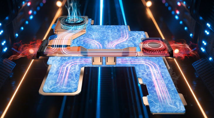 而作為一款游戲電競手機,聯(lián)想拯救者電競手機2 Pro在散熱方面做到了十分極致的水平,聯(lián)想拯救者電競手機2 Pro搭載雙渦扇增壓液冷主被動一體中置散熱系統(tǒng)——渢。在革命性ATA 2.0中置架構(gòu)的加持下,構(gòu)建三位一體、四向散熱的全新散熱方案。在機身上除了傳統(tǒng)的VC均熱版散熱外,還引入熱管對其中進行快速的導(dǎo)熱,并且為了讓熱量可以進一步帶出機身,聯(lián)想拯救者電競手機2 Pro還內(nèi)置雙渦輪增壓風(fēng)扇,0.22mm超薄扇刃風(fēng)阻更小,帶來更大通風(fēng)量,實測風(fēng)扇最高通風(fēng)量可達到2724.3ml/min。