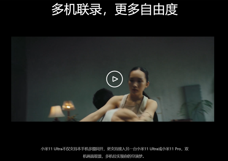 除此之外,小米11 Ultra也支持雙機畫面取景,多機位錄像,為用戶以手機同步進行攝錄提供了更加便捷的渠道,讓用戶在使用上更加便利。