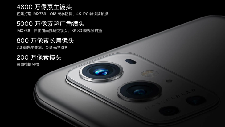 在影像方面,一加9 Pro采用了一枚和索尼聯(lián)手打造的IMX789傳感器,根據(jù)一加官方的說法,這一顆傳感器一加投入了億元的成本。在參數(shù)上,IMX789傳感器擁有 4800W 像素,1/1.35英寸的傳感器面積和 1.12um 像素尺寸,支持雙原生 ISO、OIS 光線防抖,以及全像素全向?qū)梗罡呖奢敵?12bit 色深的 RAW 格式照片和錄制4K 120幀視頻。