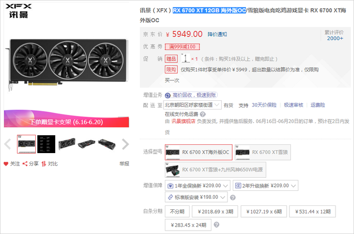 訊景RX6700XT顯卡5749元 贈(zèng)送顯卡支架