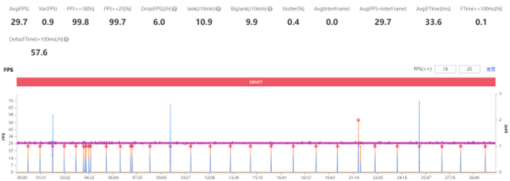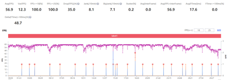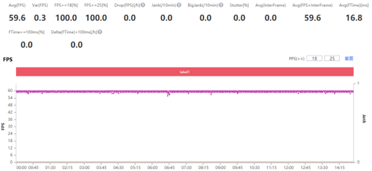 在低畫質(zhì)60幀的情況下,《原神》的平均幀率為56.9FPS,流暢度的表現(xiàn)也是非常不錯(cuò)的。