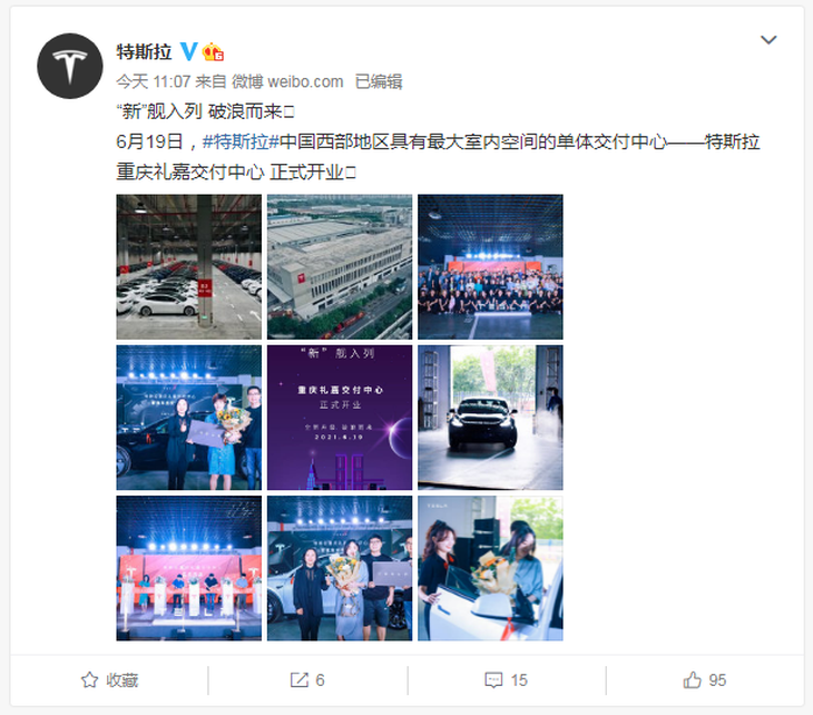 特斯拉重慶禮嘉交付中心開業(yè) 布局我國西部市場(chǎng)