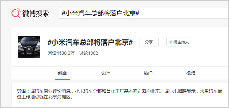微博傳聞小米汽車總部和首座工廠已決定落戶北京