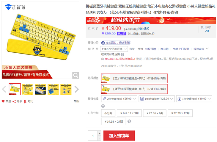 機(jī)械師&小黃人聯(lián)名定制機(jī)械鍵盤