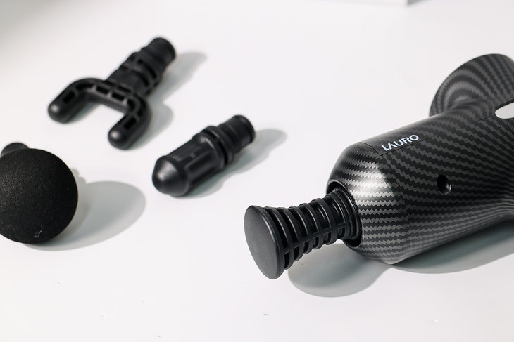 海爾LAURO筋膜槍HHZ-Q5在分別安裝不同的按摩頭時也十分方便,只需對準空洞稍用力插入按摩頭即可。