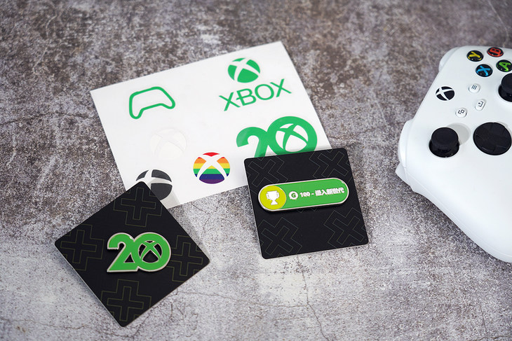 XBOX 20周年紀念禮包中也包含了貼紙和徽章,可以將貼紙貼在手機、筆記本電腦等產(chǎn)品上,讓這些產(chǎn)品也加上XBOX的紀念元素。