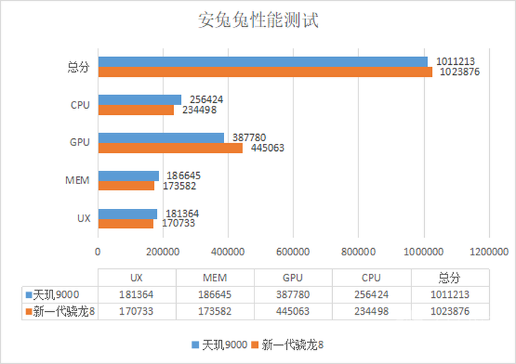 經(jīng)過實測,天璣9000的最終得分為1011213分,這個分數(shù)與我們之前測試的新一代驍龍8移動平臺處于同一水平,經(jīng)過各項對比顯示,天璣9000的CPU性能以及內(nèi)存性能都有著較為出色的表現(xiàn)。