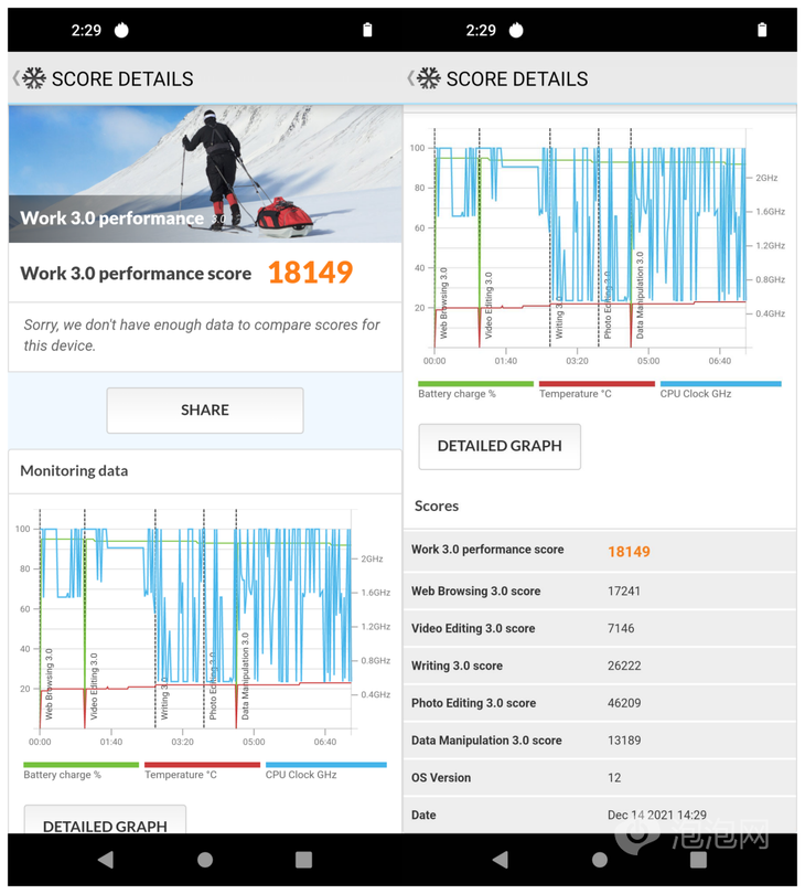 PCmark能夠?qū)κ謾C進行基準測試,基于日常應(yīng)用場景得出綜合的得分,也體現(xiàn)了設(shè)備的綜合性能表現(xiàn)。