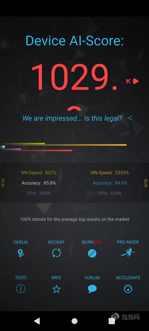 針對天璣9000的AI性能,我們采用了AI Benchmark來進行測試,最終的成績達到了1029的高分,這以這位基于天璣9000平臺的設(shè)備,在AI算力方面會有較為強大的性能表現(xiàn)。