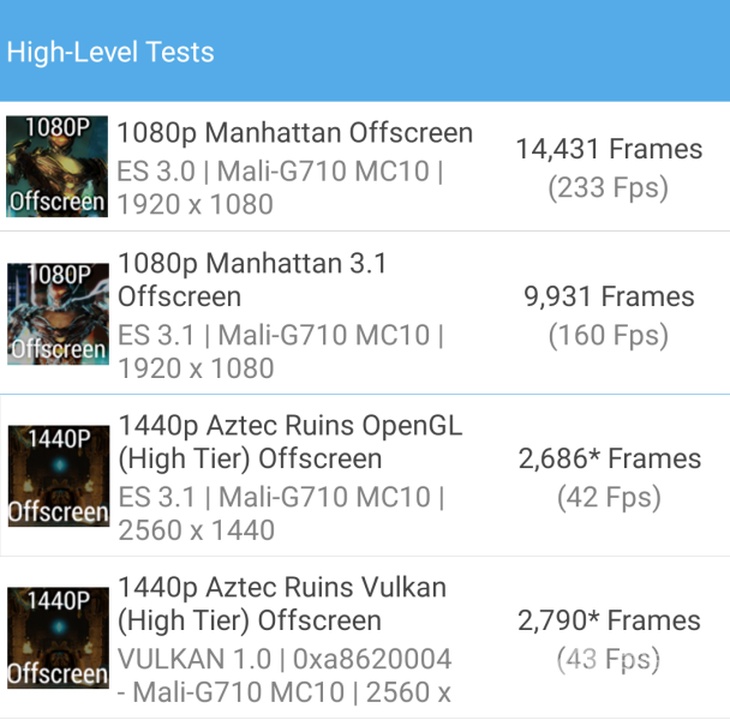 GFXBench主要測試設(shè)備的GPU性能,支持OpenGL和Vulkan兩種API,可以比較直觀的反饋GPU在處理復(fù)雜圖像表現(xiàn)時的幀率情況。