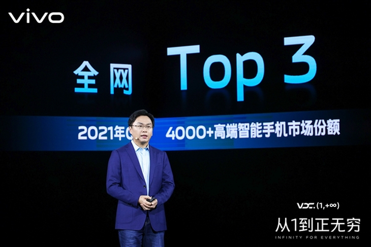 而高端市場,根據(jù)vivo官方數(shù)據(jù),2021年Q3,vivo在4000+以上高端手機(jī)市場的份額排名,已經(jīng)達(dá)到行業(yè)前三名。