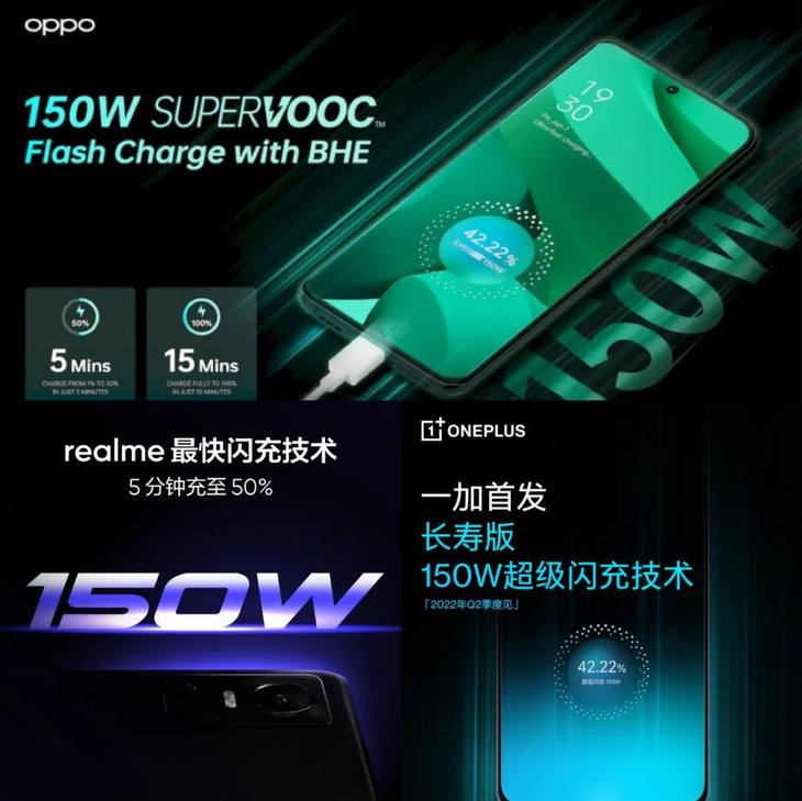 歐加集團(tuán)旗下的OPPO/一加/真我都官宣了將會(huì)采用這一項(xiàng)新的150W充電技術(shù),預(yù)計(jì)最快在4月份一加推出的旗艦級(jí)機(jī)型上就可以看到實(shí)際的應(yīng)用。而OPPO發(fā)布的240W充電技術(shù)將最高可支持到24V / 10A 充電,9 分鐘左右即可將等效 4500mAh 電池能量的手機(jī)最高充至 100%,但目前尚未公布實(shí)際的應(yīng)用時(shí)間。