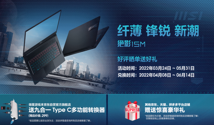 對(duì)于很多需要時(shí)不時(shí)攜帶著筆記本電腦出行的游戲愛(ài)好者以及使用游戲本作為渲染工具的設(shè)計(jì)師朋友來(lái)說(shuō),攜帶一臺(tái)厚重的游戲本出行顯得極為不便,但是卻找不到較為合適的替代產(chǎn)品,不過(guò)在現(xiàn)階段市面上已經(jīng)有不少采用了輕薄設(shè)計(jì)的高性能筆記本產(chǎn)品,例如微星 絕影15M這一類的輕薄型游戲本產(chǎn)品就是一個(gè)不錯(cuò)的選擇。目前微星絕影15M也有一波優(yōu)惠活動(dòng),頁(yè)面顯示價(jià)格為9999元,并且還有一系列的加贈(zèng)福利,在微星官網(wǎng)給出的店鋪進(jìn)行購(gòu)買還有好評(píng)有禮活動(dòng),應(yīng)該算是近段時(shí)間的一輪好價(jià),感興趣的朋友可以前往購(gòu)買。