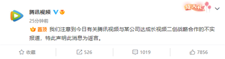 騰訊辟謠與快手達(dá)成二創(chuàng)合作:不實(shí)報(bào)道!