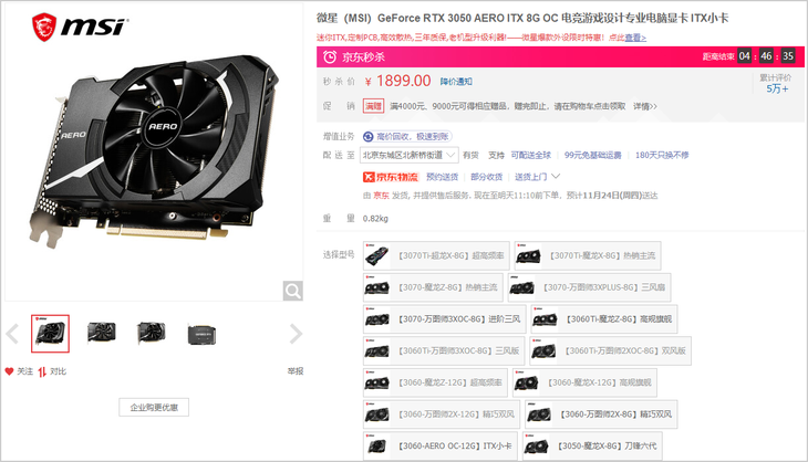 微星GeForce RTX 3050 AERO ITX 8G OC顯卡目前售價(jià)1899元,有意組建ITX平臺(tái)的玩家們可以關(guān)注下。