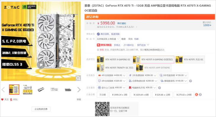 百億補(bǔ)貼,索泰RTX4070Ti顯卡京東自營不到6千元