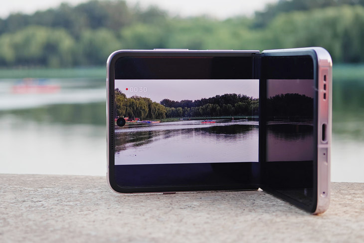 ? ? 其次,折疊屏手機(jī)的懸停功能讓我們能夠輕松實(shí)現(xiàn)延時(shí)攝影和長曝光等高級攝影題材拍攝,從而徹底告別了三腳架的束縛。我們只需將Find N3 Flip放在一個(gè)平面上隨意放置即可,即便是將手機(jī)橫向側(cè)過來擺放,穩(wěn)固的三角結(jié)構(gòu)也非常的可靠。在手機(jī)自帶的延時(shí)攝影模式中我們可以記錄時(shí)間的流逝,在長曝光中捕捉到光與影的奇妙交織,這為更多喜歡攝影的用戶帶來了更多的創(chuàng)作空間和探索潛力。